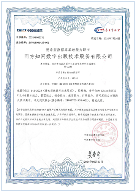 KBase搜索型数据库 KBase 作为通过信通院搜索型数据库评测的8款产品之一,成功通过了包括基本能力、管理能力、安全能力、兼容能力、扩展能力及高可用能力在内的六大能力域评测,获得评测证书。